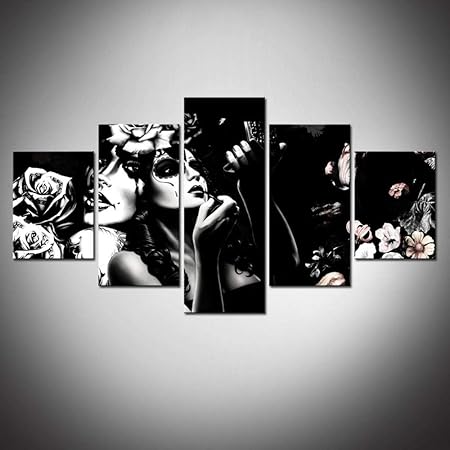 Qfazo Soggiorno Tela Stampa Hd Pittura Quadri Modulari 5 Pannelli Quadro Su Tela Nero Bianco Teschio Ragazza Cornice Da Parete Poster Da Parete Modern Home Decor Senza Cornice 40x60 40x80 40x100cm Amazon Co Uk