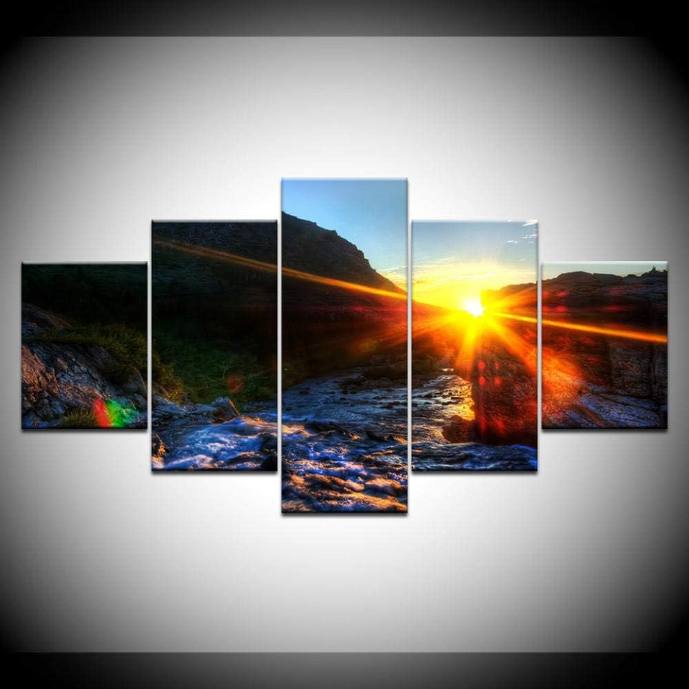 Amazon Com Woplmh Quadro Su Tela Immagini 5 Pezzi Sunset Glow Paintings Decorazioni Per La Casa Soggiorno Stampe Hd Onde Della Spiaggia 30x50cmx2 30x70cmx2 30x80cmx1 Nessuna Cornice Posters Prints