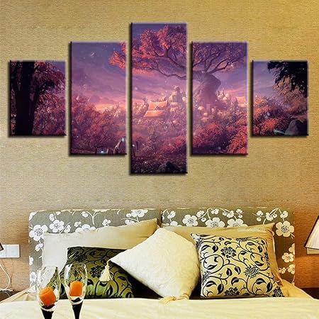 Quadro Su Tela Foresta Di Fantasia 100x50cm Quadri Moderni Stampa Su Tela Moderni Murale Per Soggiorno Camera Da Letto 5 Pezzi Senza Cornice Amazon It Casa E Cucina