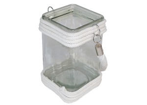 Vaso Vetro Quadro Grande Con Corda Stile Mare 13x13x23 Cm