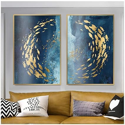 Quadro Moderno Stile Nordico Su Tela Pittura Pesce Dorato Blu Mare Poster Decorazione Della Casa Pittura Murale Per Soggiorno 50x70 Cm Senza Cornice Amazon It Fai Da Te