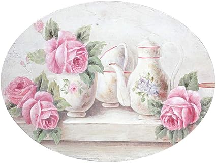 Disraeli Quadro Legno Ovale Con Rose Stile Shabby Chic Vintage Arredamento 40x30x1 7cm Amazon It Casa E Cucina