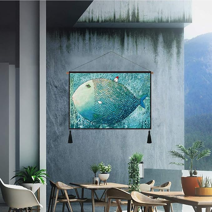 H Rb Ins Pesce Appeso Pittura Tessuto Cotone Tappezzeria Camera Da Letto Muro Di Stoffa Coperta Metro Elettrico Copertina Quadro 65 45cm Casa E Cucina Decorazioni Per Interni