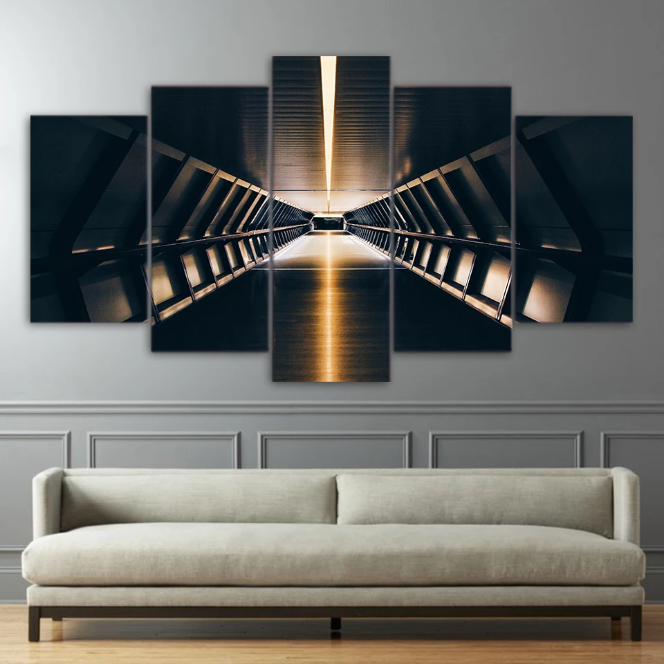 Quadro moderno di grande formato su tela da 2 cm diviso in 5 pezzi montati facili da appendere.