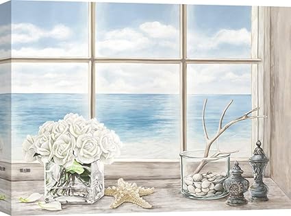 Art Print Cafe Quadro Moderno Stampa Su Tela Remy Dellal Finestra Con Vista Sul Mare 60x40 Cm Amazon It Casa E Cucina