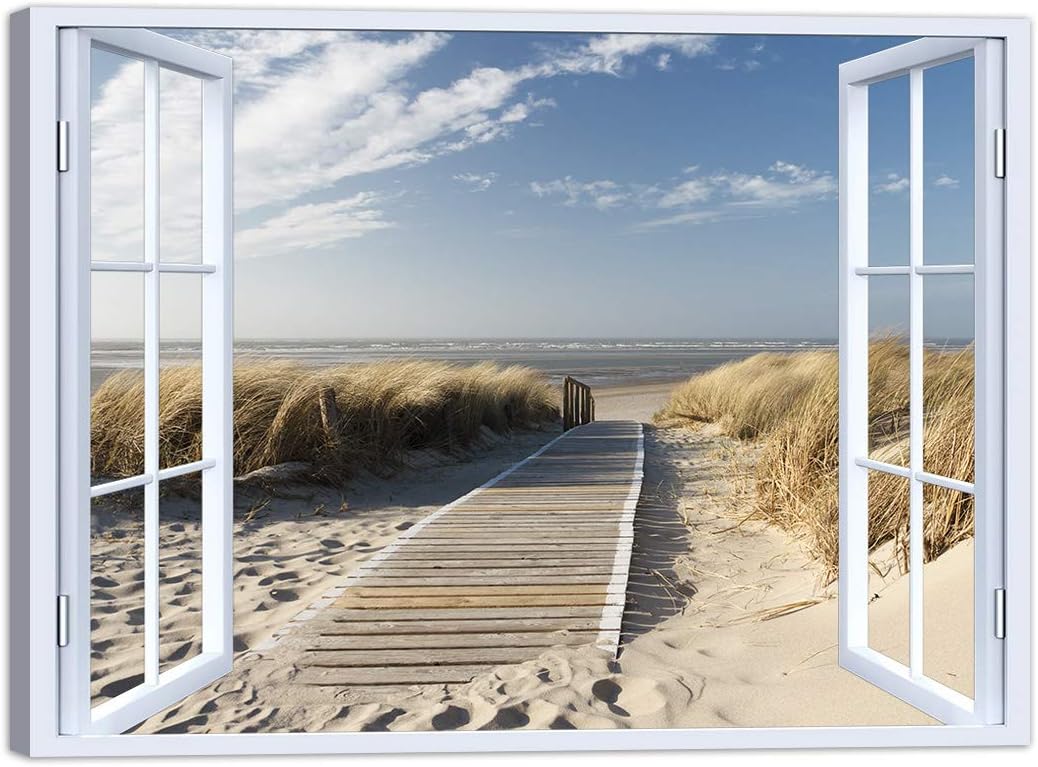 Luxhomedecor Quadro Finestra Spiaggia Mare 100x75 Cm Stampa Su Tela Con Telaio In Legno Arredamento Arte Arredo Moderno Amazon It Casa E Cucina