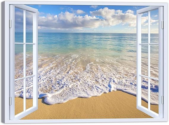 Luxhomedecor Quadro Finestra Mare Spiaggia 100x75 Cm Stampa Su Tela Con Telaio In Legno Arredamento Arte Arredo Moderno Amazon It Casa E Cucina