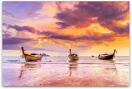 Quadro Su Vetro Acrilico Paesaggio Barche Sul Mare Viola Moderno Stampa 60 X 90 Cm Amazon It Casa E Cucina