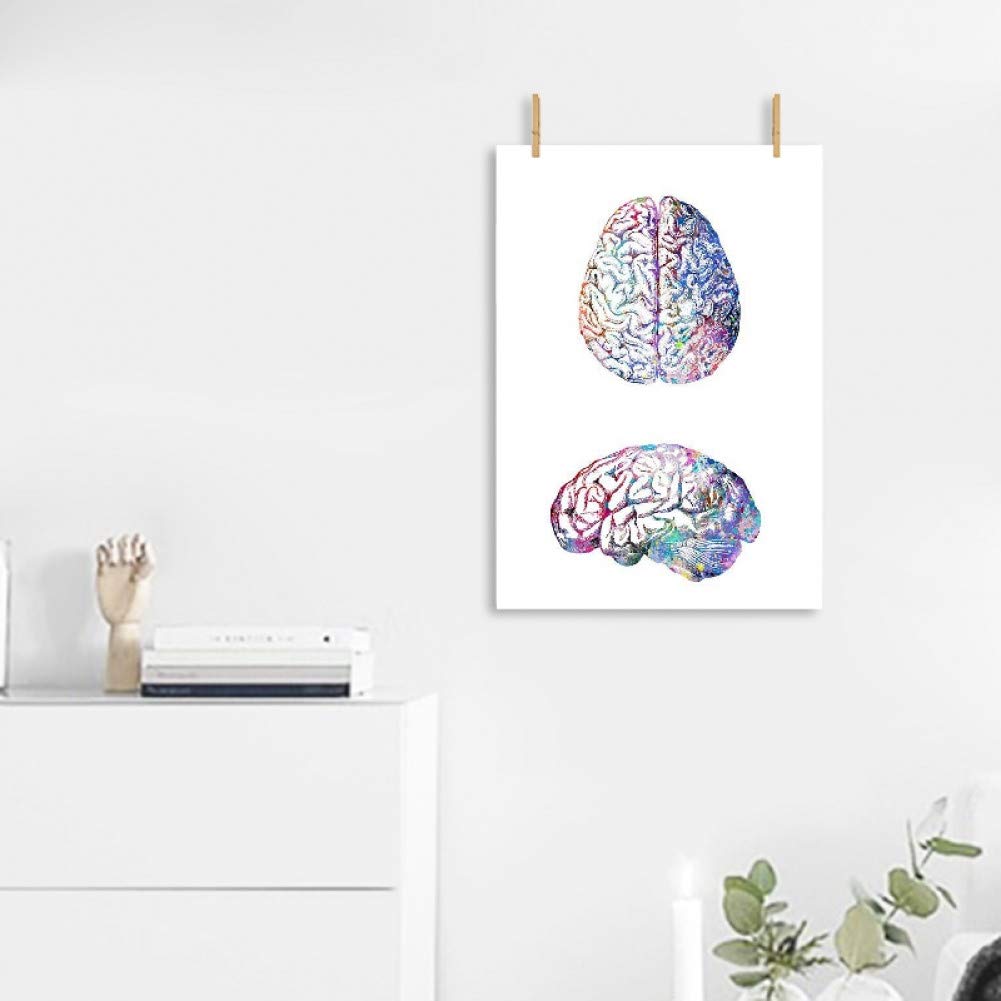 Tele Casa E Cucina Quadro Tela Decorazione Pittura Cervello Umano Anatomia Lato E Lato Superiore Visualizza Poster E Stampe Acquerello Colorato Arte Della Parete Biologia Scienza Regalo Di Pittura Medica 20x28inch