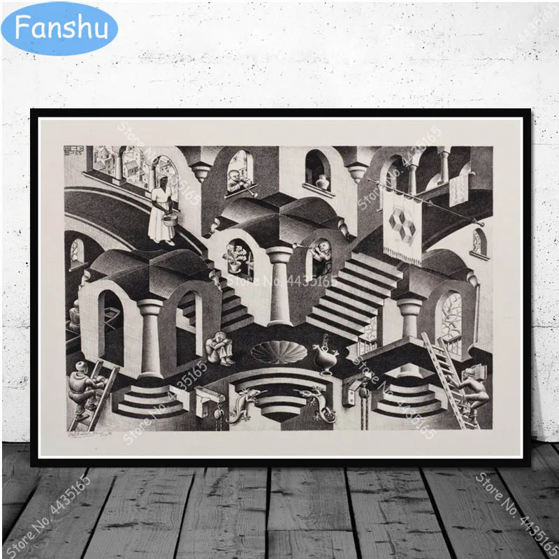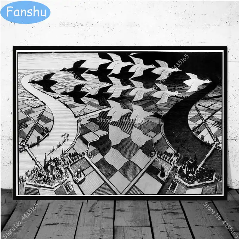 Poster Escher Surreal Geometrico Arte Da Parede Quadros Em Tela Cartazes E Impressoes Para O Quarto Decorativo Decoracao Para Casa Pintura E Caligrafia Aliexpress