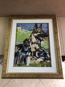 Quadro Ad Uncinetto Cani Pastore Tedesco Dipinto Con Cornice E Vetro Vintage Ebay