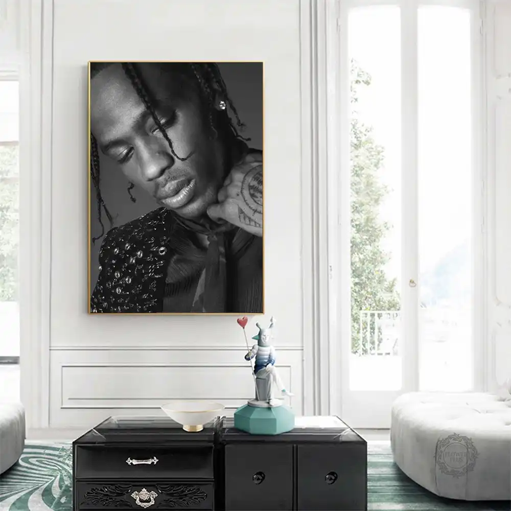 Black White Travis Scott Music Star Rap Hip Hop Rapper Fashion Model Art Painting Canvas Poster Wall Home Decor Quadro Cuadros Painting Calligraphy Aliexpress