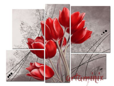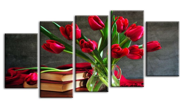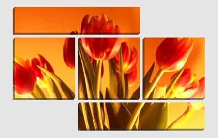 Quadro 5 Pezzi Tulipani Rossi Versione Quadro Non Diviso In Pezzi Amazon It Casa E Cucina