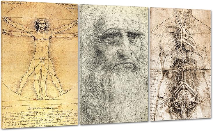 Quadro Trittico Leonardo Da Vinci Uomo Vitruviano Arte Moderna Idea Regalo Casa Ebay