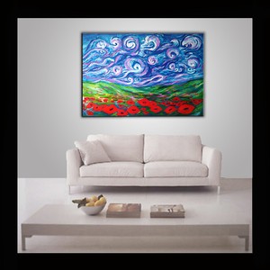 Quadro Moderno Astratto Omaggio A Van Gogh Colori Dipinto Olio Su Tela Papaveri Ebay