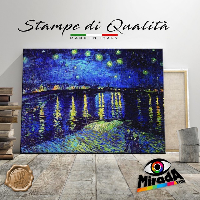 Quadro Stampa Su Tela Canvas Vincent Van Gogh Notte Stellata Sul Rodano 100 X 140 Cm Amazon It Casa E Cucina
