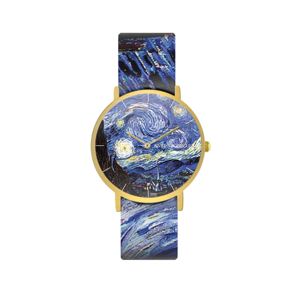 Alviero Rodriguez Orologio Notte Stellata Arte Quadro Notte Stelle Cielo Van Gogh Con Cinturino In Vera Pelle Orologi Decorazioni Per Interni
