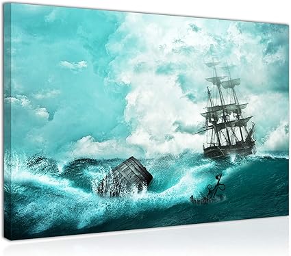 Topquadro Quadro Stampa Su Tela 70x50cm Nave Naufragio Tempesta Mare Mosso E Onde Alte Decorazioni Interni Amazon It Casa E Cucina