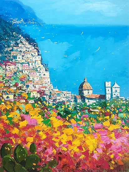 Agostino Veroni Positano Quadro Su Tela Con Fiore Originale Verticale Grande Arte Italiana Regalo Arte Murale Amazon It Casa E Cucina