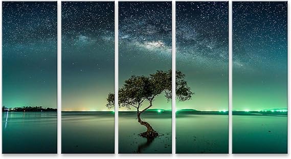 Quadro Su Tela Paesaggio Con La Galassia Della Via Lattea Cielo Notturno Con Le Stelle Stampa Foto Quadri Moderni Amazon It Casa E Cucina