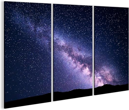 Notte Stellata Via Lattea Quadro Moderno Trittico Stampa Tela Pronto Da Appender Ebay