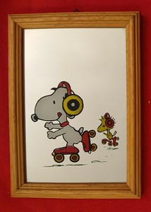 Quadro A Specchio Painted Mirror Snoopy Woodstock Con Cuffie E Pattini Peanuts Ebay