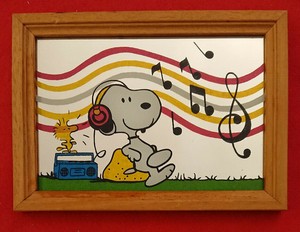 Quadro A Specchio Painted Mirror Snoopy E Woodstock Cuffie Stereo Musica Peanuts Ebay