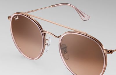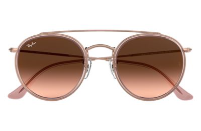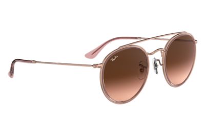 Ray Ban Round Double Bridge Rb3647n Pink Metal Brown Lenses 0rb3647n9069a551 Ray Ban Usa