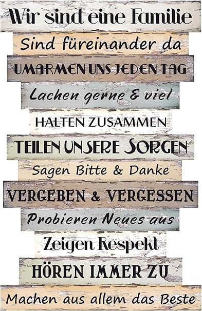 Mc Trend Quadro Da Parete Con Regole Della Famiglia In Lingua Tedesca In Legno In Stile Shabby Chic Targa Vintage Colorata Per La Famiglia Versione In Lingua Tedesca Amazon It Casa E Cucina