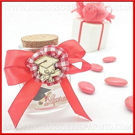 Ingrosso E Risparmio Barattolino In Vetro Con Tappo In Sughero Coccarda A Quadri Con Legnetto A Forma Di Tocco E Fiocco In Raso Rosso Bomboniere Laurea Senza Confezionamento Amazon It Casa E Cucina