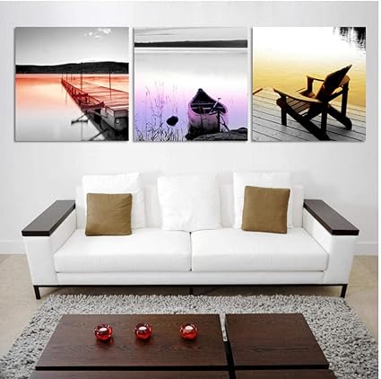 Trittico Quadri Moderni 3 Pezzi Sedia Della Barca Nel Corridoio Del Lago Creativo Art Trittico Canvas Soggiorno Camera Da Letto Ristorante Pittura Ad Olio Decor Foto Appesa A2 Amazon It Fai Da Te