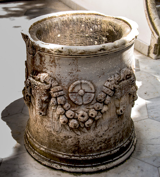 Sculture In Pronta Consegna R096 Antico Pozzo Quadrato In Marmo Con Colonne E Portale Peotta Bruno