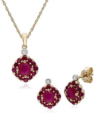 Gemondo In Oro Giallo 9 K Con Rubino E Diamante Quadrato Cluster Orecchini 45 Cm Collana Set Amazon It Gioielli