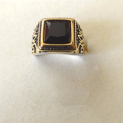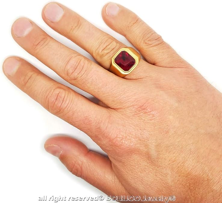 Anello Anello Uomo Cabochon Quadrato In Acciaio Inox Dore Placcati In Oro Finto Rubino Bobijoo Jewelry Gioielli Uomo