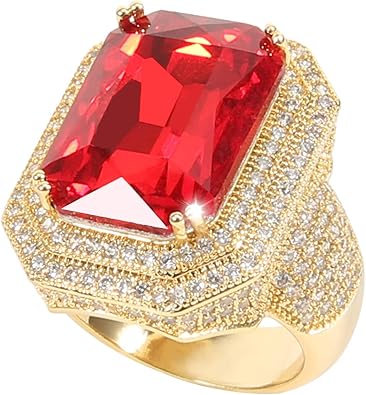 Hongboom Hot Hip Hop Anello Placcato In Argento 18 K Con Zirconia Cubica E Rubino Quadrato Amazon It Gioielli