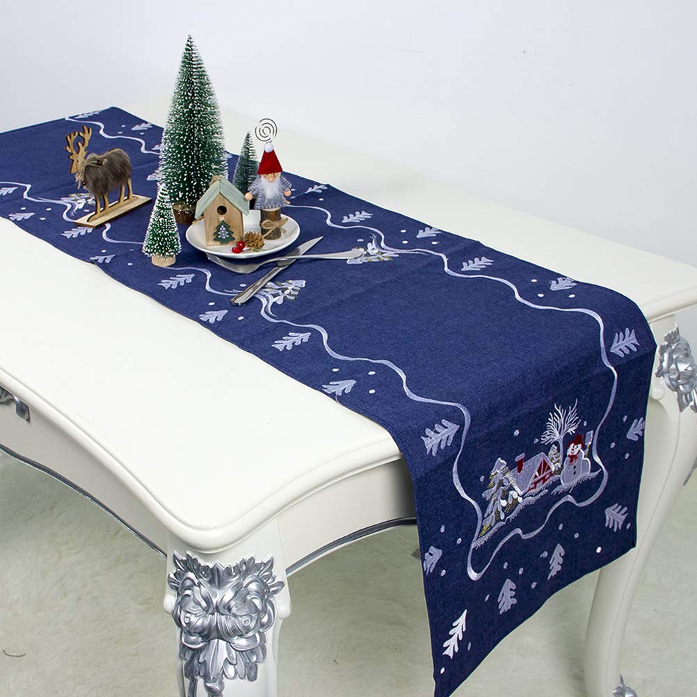 Blu Tessuto 180 40cm Macabolo Runner Da Tavolo Natalizio Con Babbo Natale E Pupazzo Di Neve Ricamato Tovaglia Per Natale Cena Festa Tessili Da Cucina Tessili Per La Casa