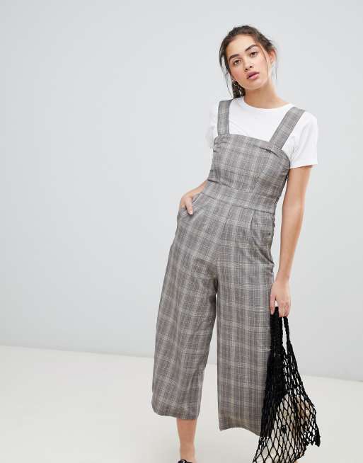 Salopette A Quadri Effetto Lino Con Pantaloni Culottes Boohoo