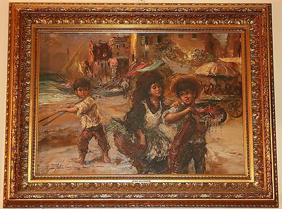 Nino Salvadori Marina Con Scugnizzi Olio Su Tela 70 X 50 Dei Primi Anni 70 Ebay