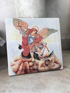 Mattonella In Ceramica Raffigurante San Michele Arcangelo Dipinta A Mano 25x25 Ebay