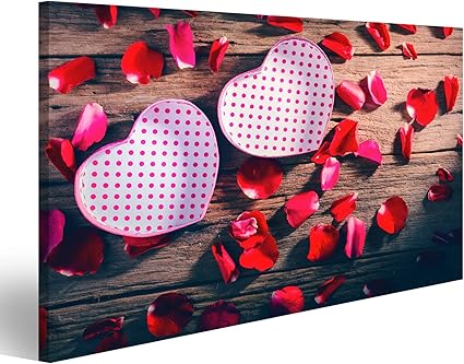 Islandburner Quadro Moderno Amore Per San Valentino Coppia Cuore Con Petali Di Rosa Su Legno Amazon It Casa E Cucina