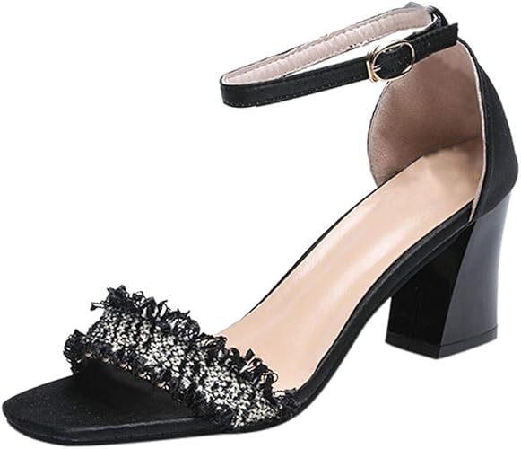 Lilicat Donna Tacco Basso Peep Toe Stiletto Sintetico Cinturino Alla Caviglia Sandalo Sandali Cinturino Alla Caviglia Fibbia Romana A Testa Quadrata Con Sandali Tacco Grosso Nero 38 Eu Amazon It Scarpe E Borse