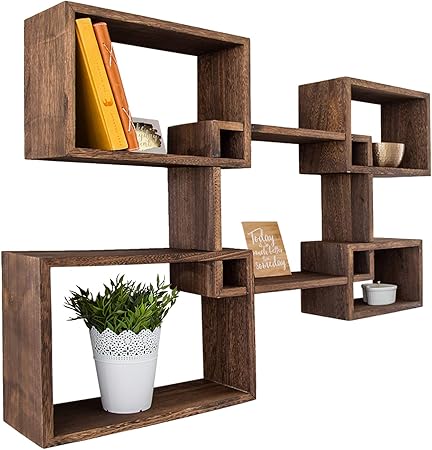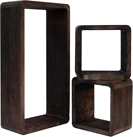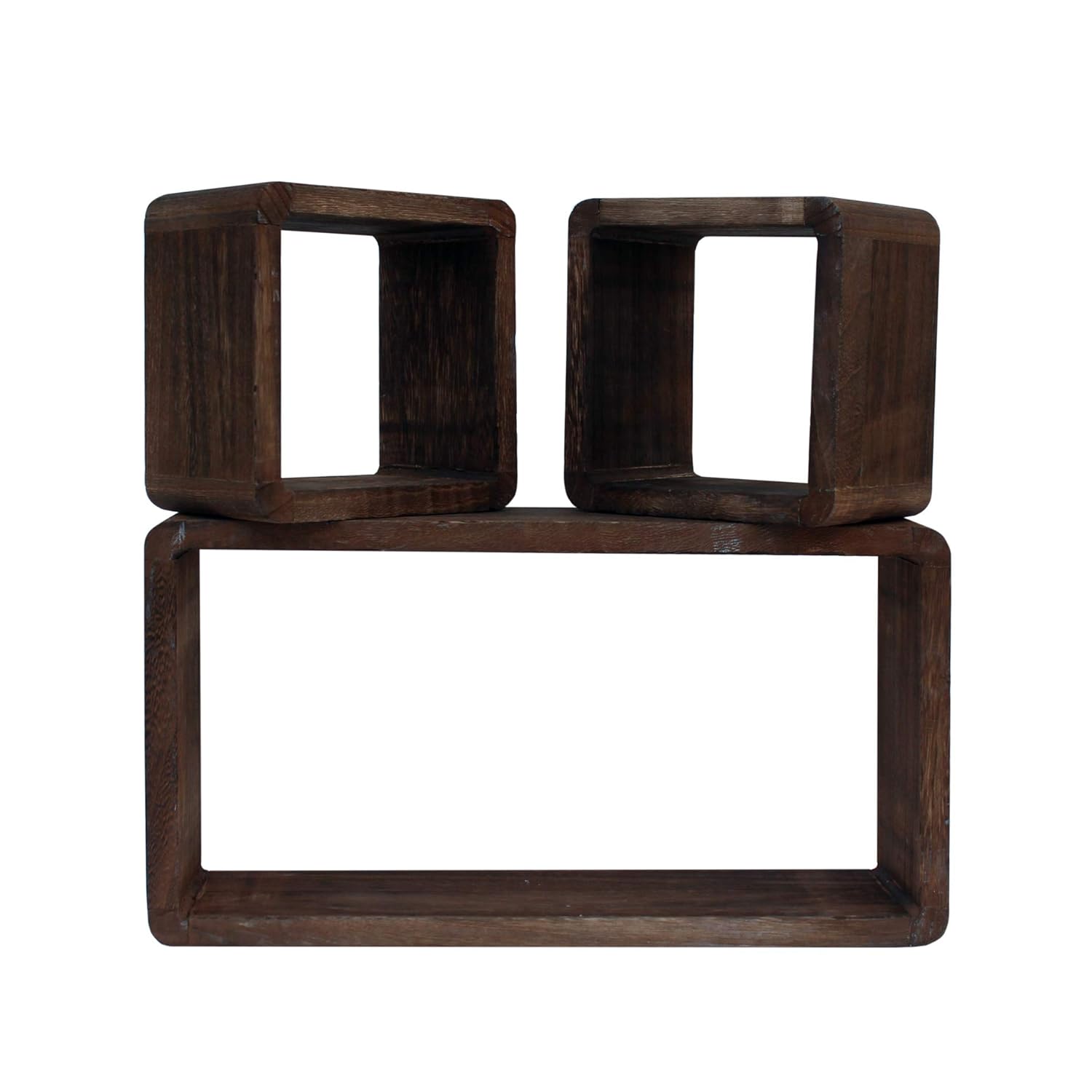 Rebecca Mobili Set 3 Pz Mensole Scaffali 2 Quadrati 1 Cubo Legno Paulownia Marrone Scuro Stile Moderno Arredo Casa Cod Re6302 Amazon It Casa E Cucina