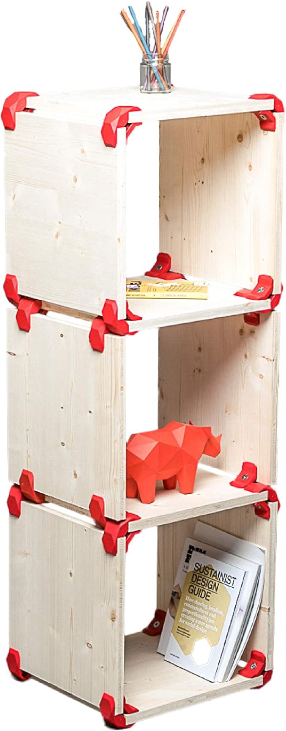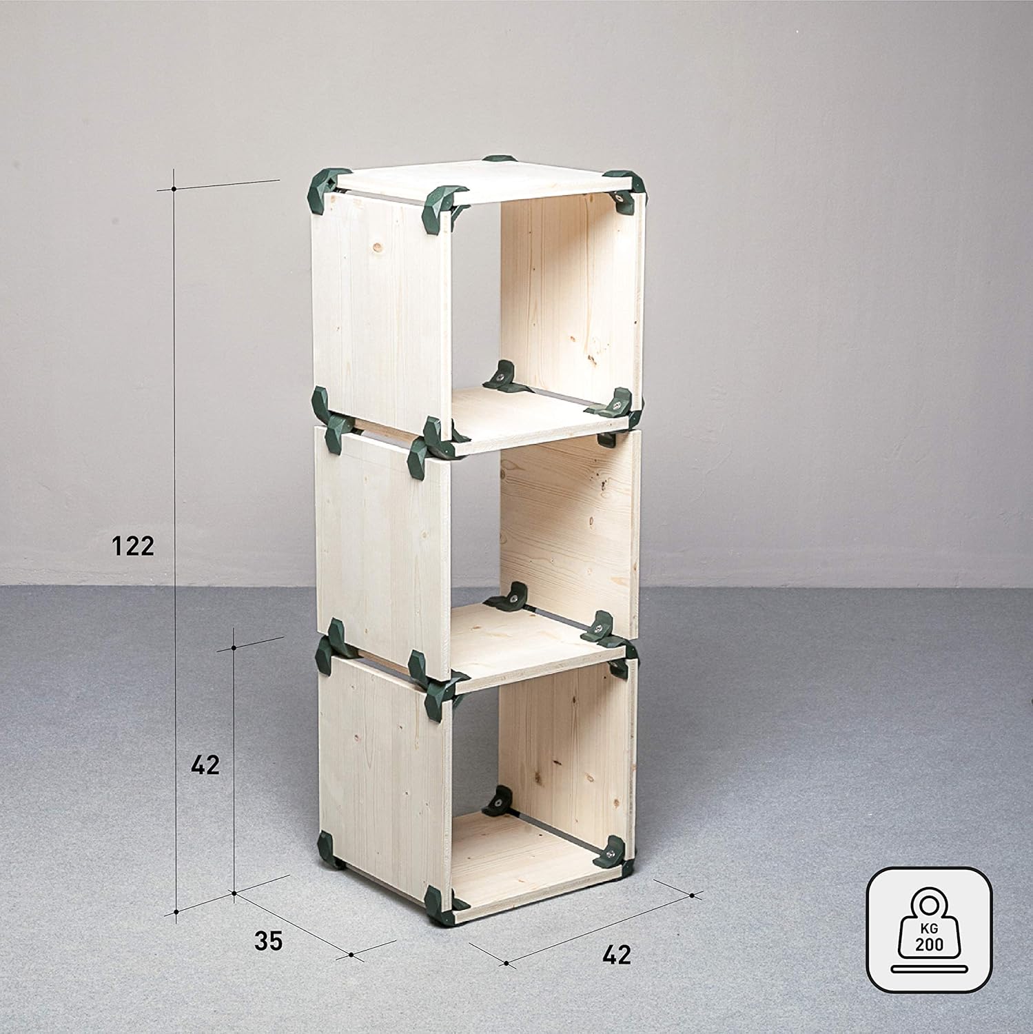 Playwood Kit Scaffale A 3 Ripiani Multifunzione In Legno Di Abete 24 Connettori E 12 Pannelli Quadrati Inclusi Misure 42x122x35 Cm Connettori Verde Oliva 3 Sq Fir 8090 A 336ag