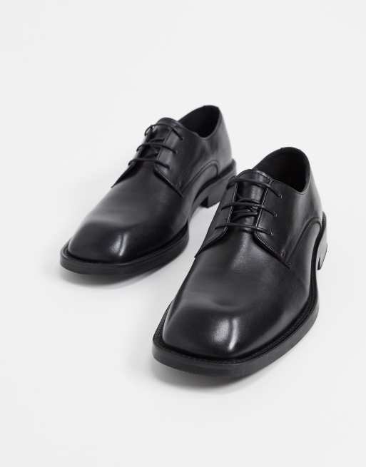 Asos Design Scarpe Stringate In Pelle Nera Con Punta Quadrata Asos