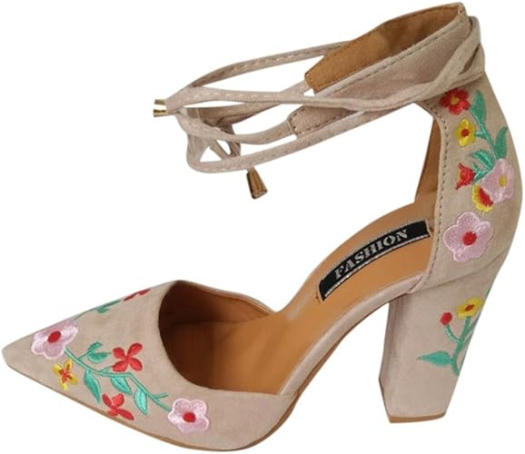 Hbdlh Scarpe Da Donna Retro Punte Quadrate Spesso I Tacchi Cross Chiusura Estiva Sandali Lady 7 Cm Tacchi A Spillo Roman Girls Shoes Beige