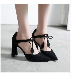 Nero Punta Quadrata Di Velluto A Coste Pompe Donne Croce Tacco Grosso Alto Scarpe Ws910093 94 45