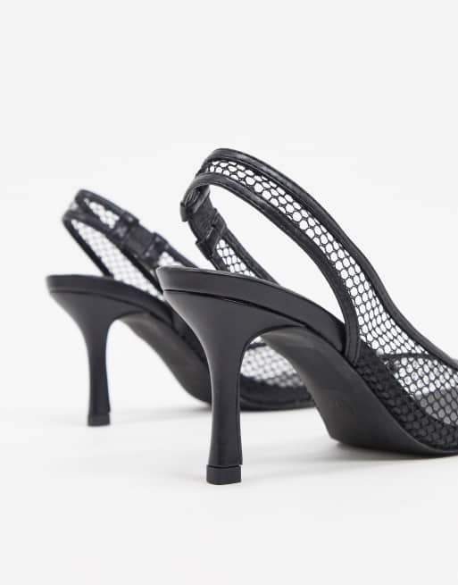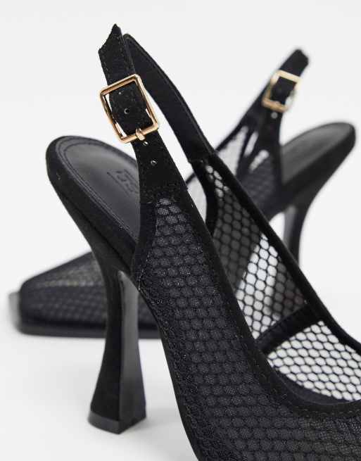Asos Design Pryce Scarpe Nere Con Tacco Punta Quadrata E Cinturino Posteriore In Rete Asos