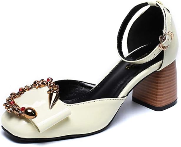 2019 Estate Nuovo Stile Fibbia Scarpe Singole Femminile Con Testa Quadrata Moda Selvaggia Ragazza Strass Piccoli Tacchi Alti Freschi 40 Beige 6 Cm Amazon It Scarpe E Borse