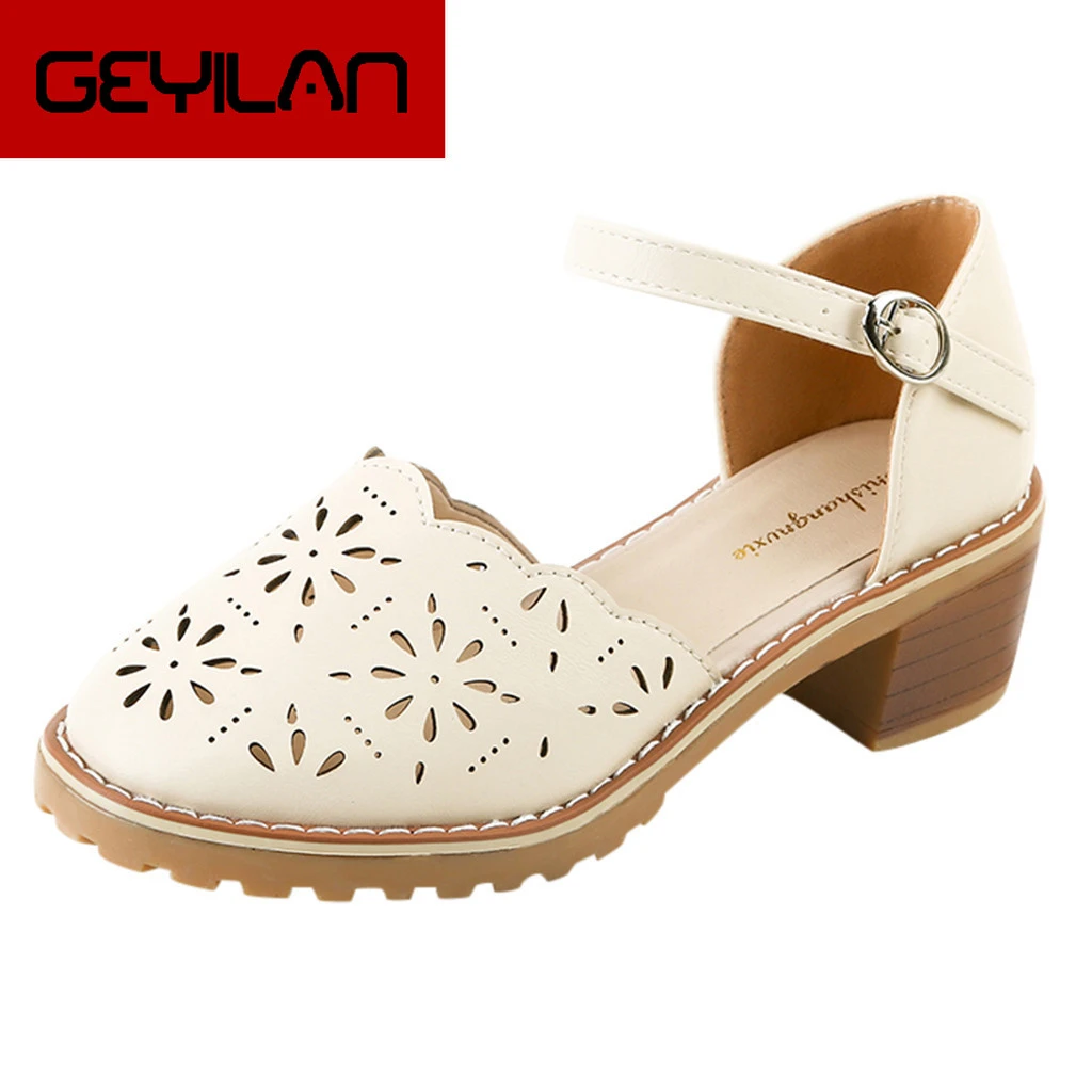 Signore Pompe Tacco Basso Scarpe Retro Romano Scava Fuori Il Tacco Quadrato Scarpe Di Cuoio Delle Signore Casual Tacco Di Spessore Singoli Pattini Pumps Da Donna Aliexpress