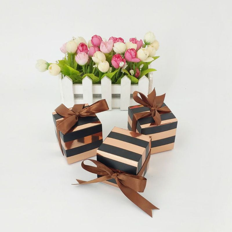 Acquista Scatole Dimballaggio Di Cartone Quadrato Di Rosa Scatola Di Strisce Nere Doro Con Nastro Di Seta Bomboniere Scatole Regalo A 0 22 Dal Fashiontrend2016 Dhgate Com